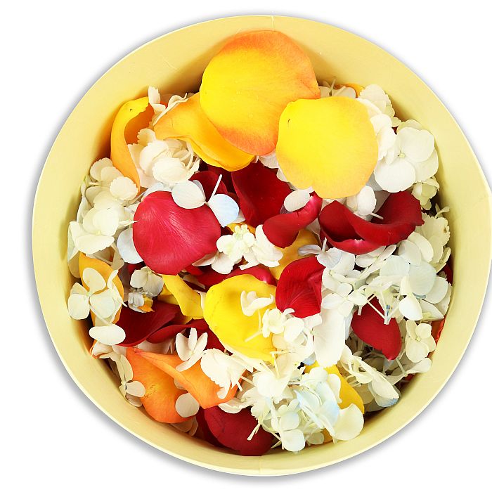 Immerse yourself in the grace and harmony of our stunning floral arrangement. This bouquet showcases a beautiful blend of Hydrangea, Rose, and Chrysanthemum petals, each selected for their vibrant hues and exquisite forms.