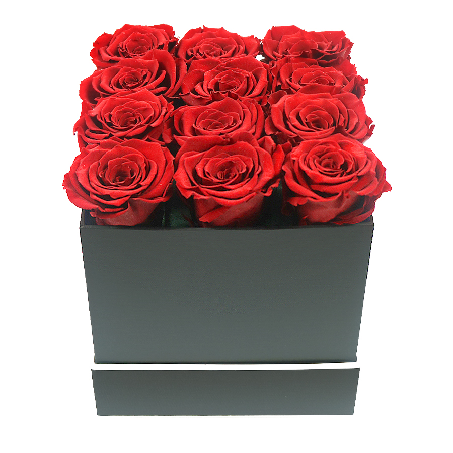 Impress with our refined red rose collection, gracefully arranged in an elegant box. Each rose is hand-selected for its vibrant color and pristine condition, ensuring a magnificent bouquet that remains beautiful for years.